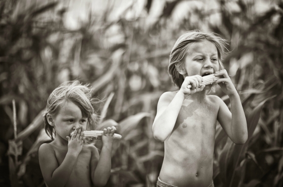 Majka izviri na trem. Stariji sin baci sekiru.